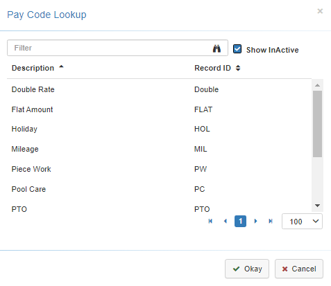 In the pop-up box provided, click to highlight the Pay Code you would like to apply and select 'Okay'. -