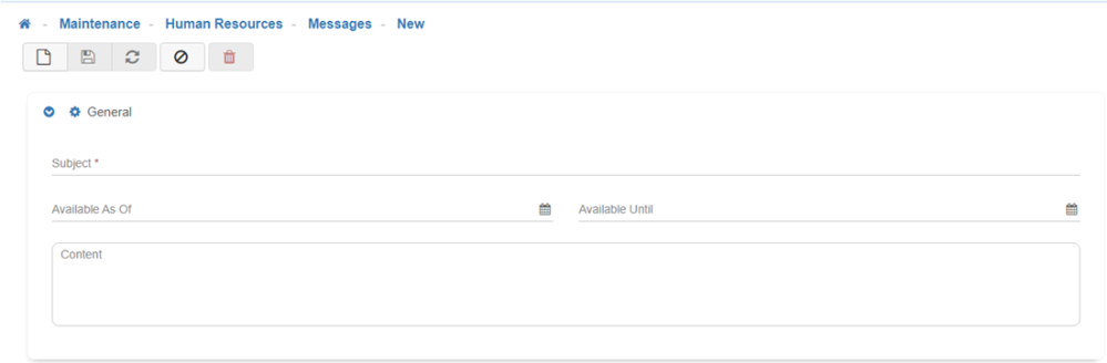 The Messages Maintenance allows for the creation of messages & related documents to be disseminated to Users within LightWork. The Messages Maintenance allows for configuration of what is included in these messages from Human Resources, who sees them on their ‘My Messages’ Dashboard widget, and for how long these are available to Users.