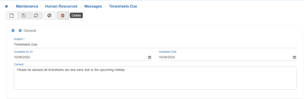 To delete an existing message, click into the one you would like to delete and select the 'Delete' icon. -