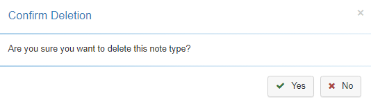 When the 'Confirm Deletion' modal generates select 'Okay' to confirm deletion, or 'No' to return to the Note Type without deleting.