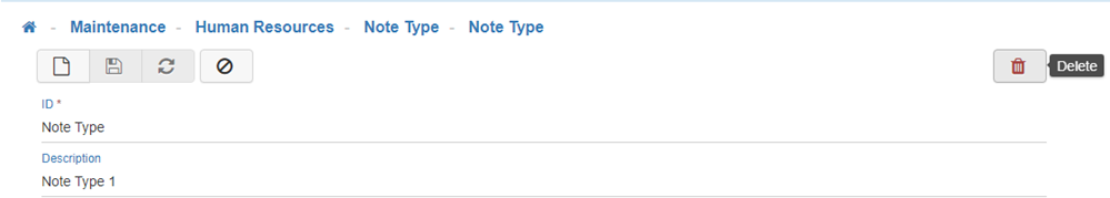 To delete an existing Note Type, click into the one you would like to delete and select the 'Delete' icon. -