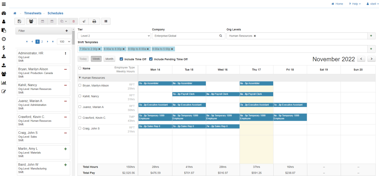 Note: Schedules will only populate if an Employee has a Shift assigned to them in the Employee profile. -