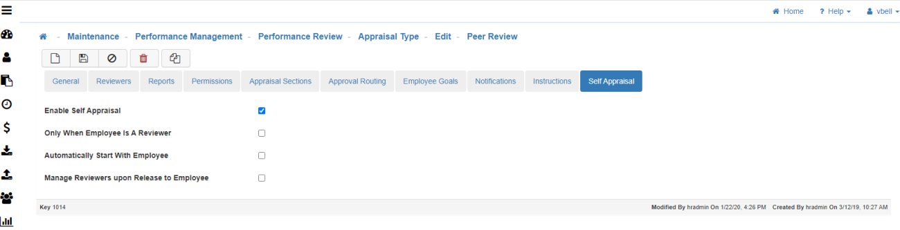 The Self Appraisal Tab makes the Appraisal Sections available to the Employee so that they can add Notes or Comments to their Appraisal.