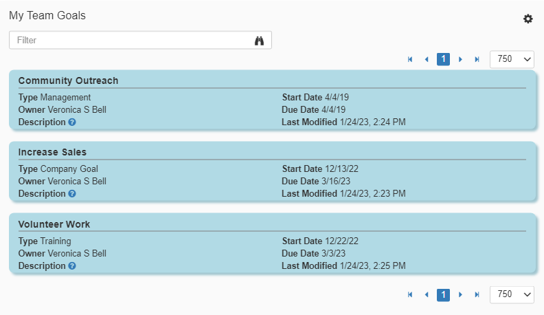 Type the title of the Goal in the search filter to search for a specific Goal.