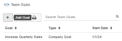 To print a list of 'Team Goals' select the 'Print' button in the top right-hand section of the toolbar. This will provide you with a detailed printable view of your Team Goals.