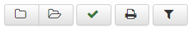 The button tools available in the upper left-hand side of the screen are called the 'Toolbar'. You can hover over these buttons for a tooltip that says what each of the buttons is called, but in the Timesheet list, you have the options below: