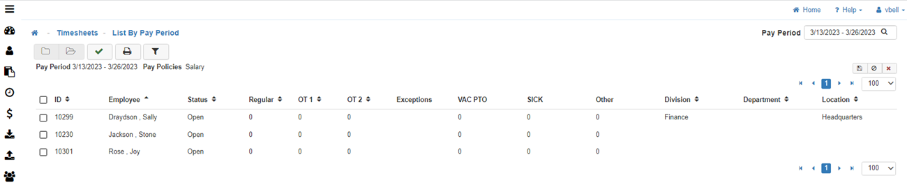 Allows you to open all of the remaining unopened Timesheet(s) for that specific Pay Period. -
