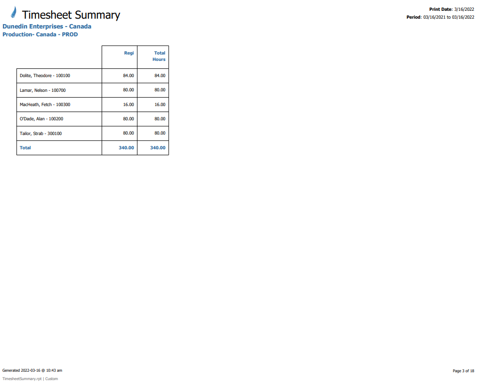 The Timesheet Summary report provides a summary of all Employees or specific Employee Timesheet(s) for a selected date range.
