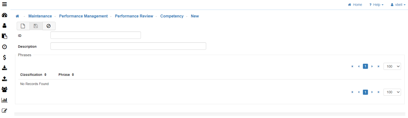 The Competencies available in this list have phrases assigned to them. Phrases are associated to the Competencies under the 'Phrases' section; however, the Competencies must be created here first before any Phrases can be assigned to them.