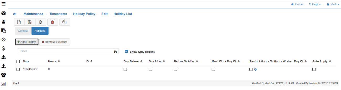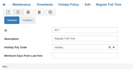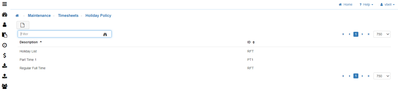 The Holiday Policy Maintenance is where you setup the Holiday Policies that will be assigned to your Employees.