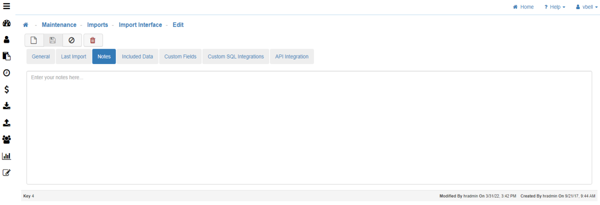 A free-form area to add notes related to the import. For example, listing the data that is being brought in with this import.