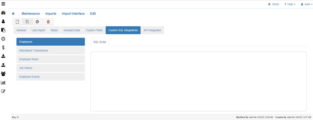 NEEDS TO BE DONE BEFORE THE FIRST IMPORT. There must always be an SQL script located within this tab as it is used to create the staging area.