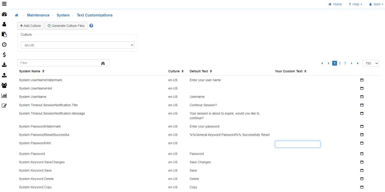 The Text Customizations Maintenance allows you to Customize the verbiage in your LightWork system. (I.e. buttons, labels, etc.)