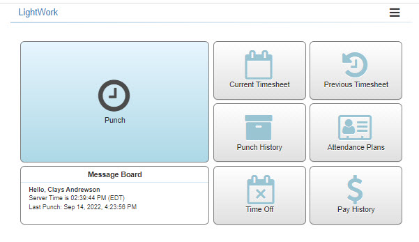 Provides access to the ‘Time Off’ button on the Kiosk home screen. This setting combined with the ‘Punch User Group’ field in the Timesheets Module Options and securables related to the Kiosk (securables for the Kiosk which control Attendance Plans, Current Timesheet, Pay History, Previous Timesheet, and Punch History buttons) controls what a Punch user would have access to in the Kiosk. -